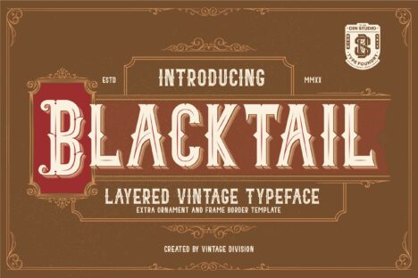 Calling out all Blacktail! Here is Blacktail Vintage Font for your vintage concept project designs. This font presents a vintage and layered style containing four layers. It is best for branding projects, t-shirt printings, book covers, film titles and any other designs needing vintage vibes on them. Make your design look powerful with this font.