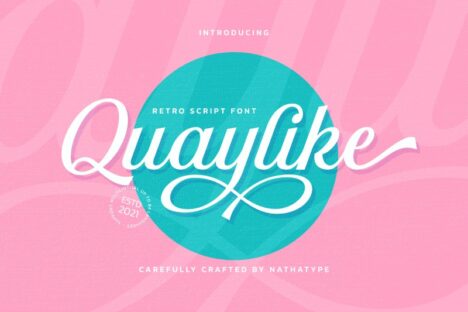 Quaylike is a charming handwritten script font expressing luxury and elegance. The font’s designs are not interconnected and some of the characters or letters are curved on the edges to beautify the displays. Due to its great legibility, you may apply Quaylike for texts in various sizes.